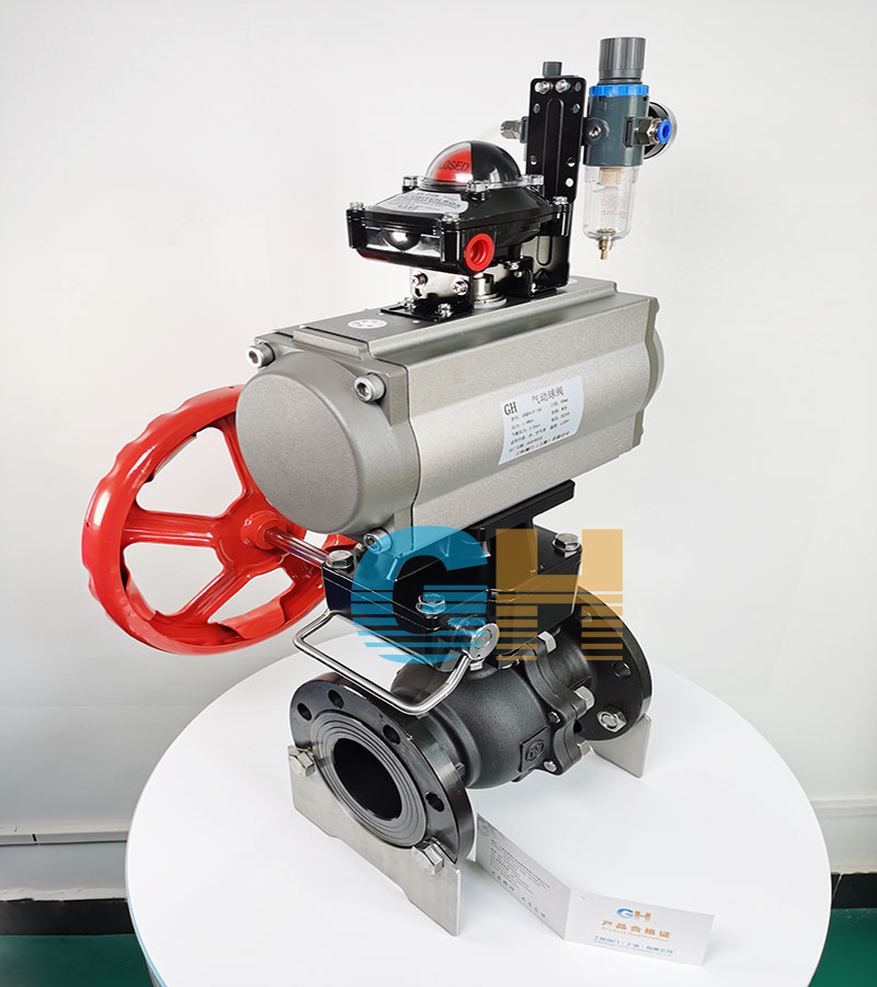 Q641F-16C法蘭式碳鋼氣動球閥-帶手動機構