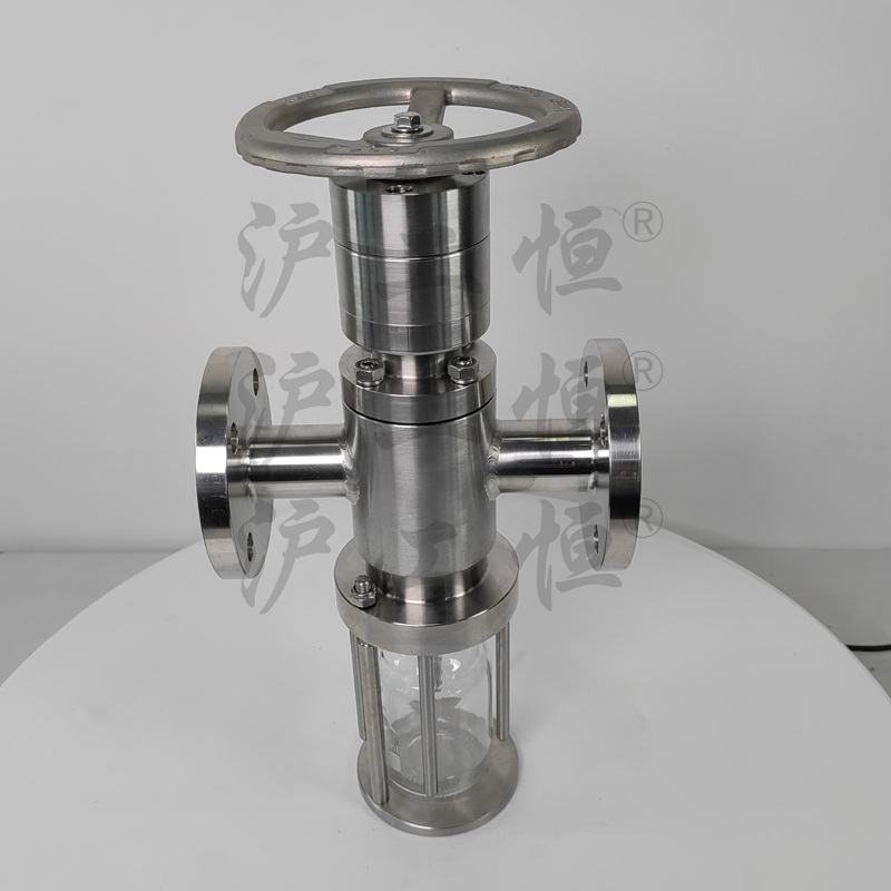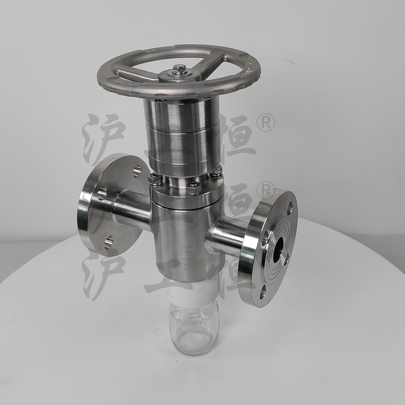 直通法蘭取樣閥解決了現有取樣閥的復雜結構,密閉取樣閥主要有閥體、閥芯、閥桿、閥座、密閉針、取樣瓶組成,取樣瓶為可拆卸設計,試樣通過密閉針進入取樣瓶內,橡膠可將取樣瓶密封,避免污染試樣,流道無流阻設計,不影響流量,閥桿通過手輪、電動執行機構、氣動執行機構旋轉帶動閥桿及閥芯,閥芯上下提拉,可精確控制流量,實現試樣進入取樣瓶內,取樣瓶可選透明和避光兩種,本取樣閥廣泛應用在制藥、化工、食品行業。