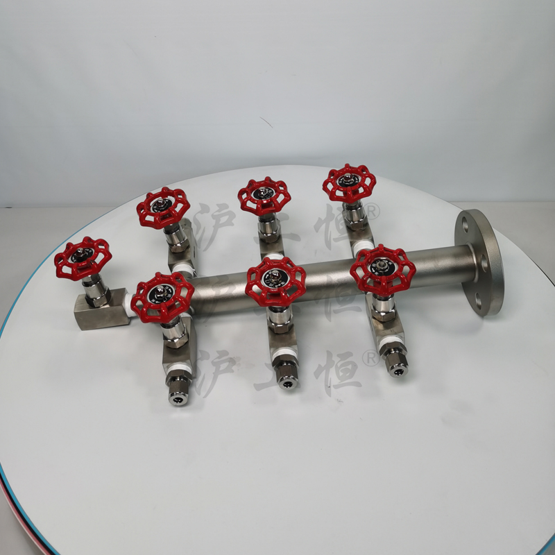 ②氣源分配器,一般采用直徑32的不銹鋼管,結合不銹鋼閥門(球閥或截止閥)及儀表管件(①擴口壓接式接頭②卡套接頭③快接等三種可供選擇)組成分配系統。